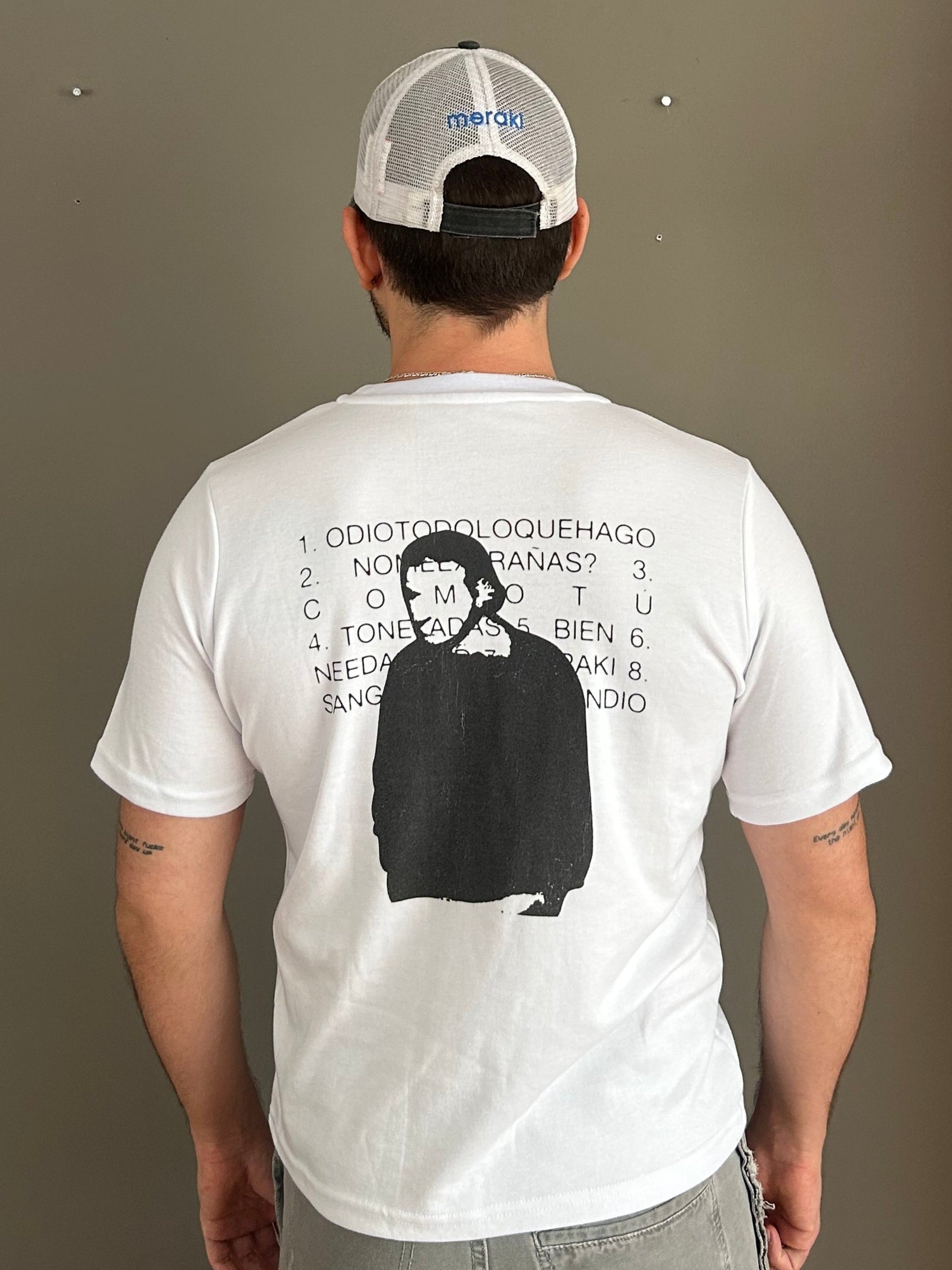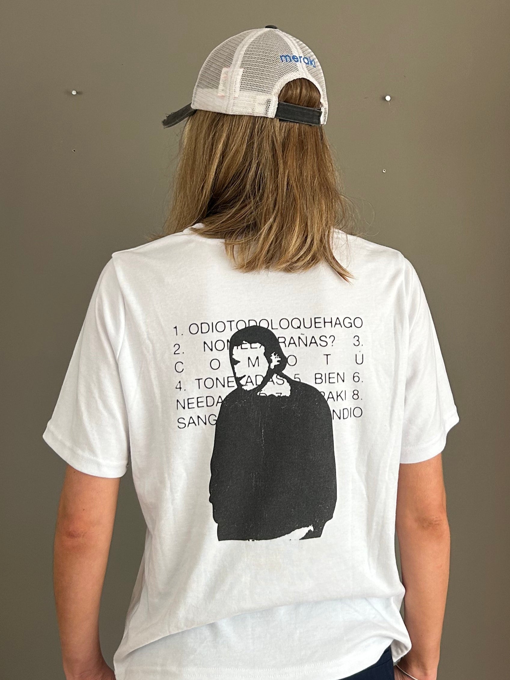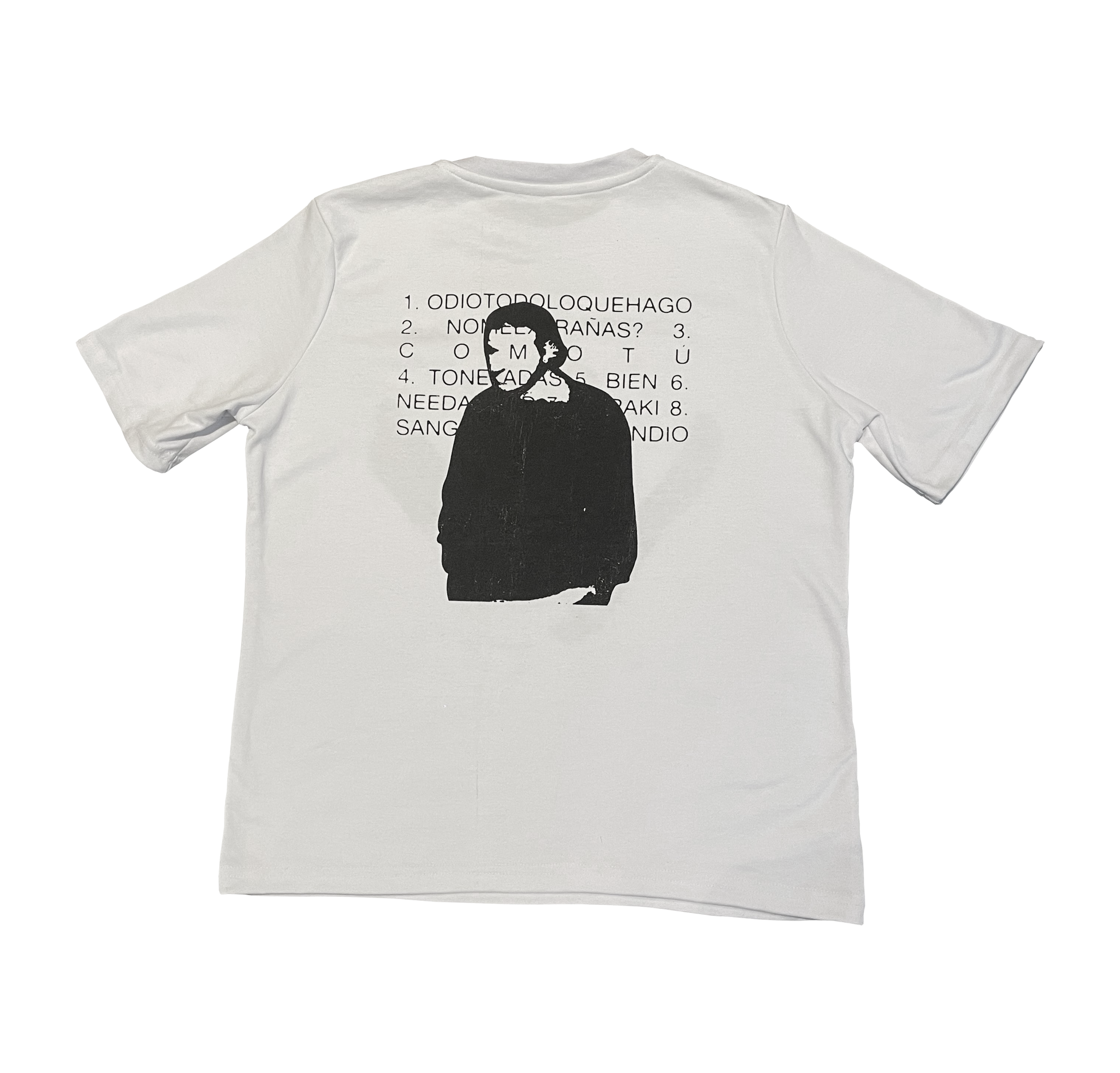 Camiseta blanca de alta calidad, 95% algodón 5% elastano. Serigrafía al frente con el logo de Cris D’alva y el tracklist completo del álbum en la parte trasera. Cómoda, duradera y perfecta para llevar música puesta.