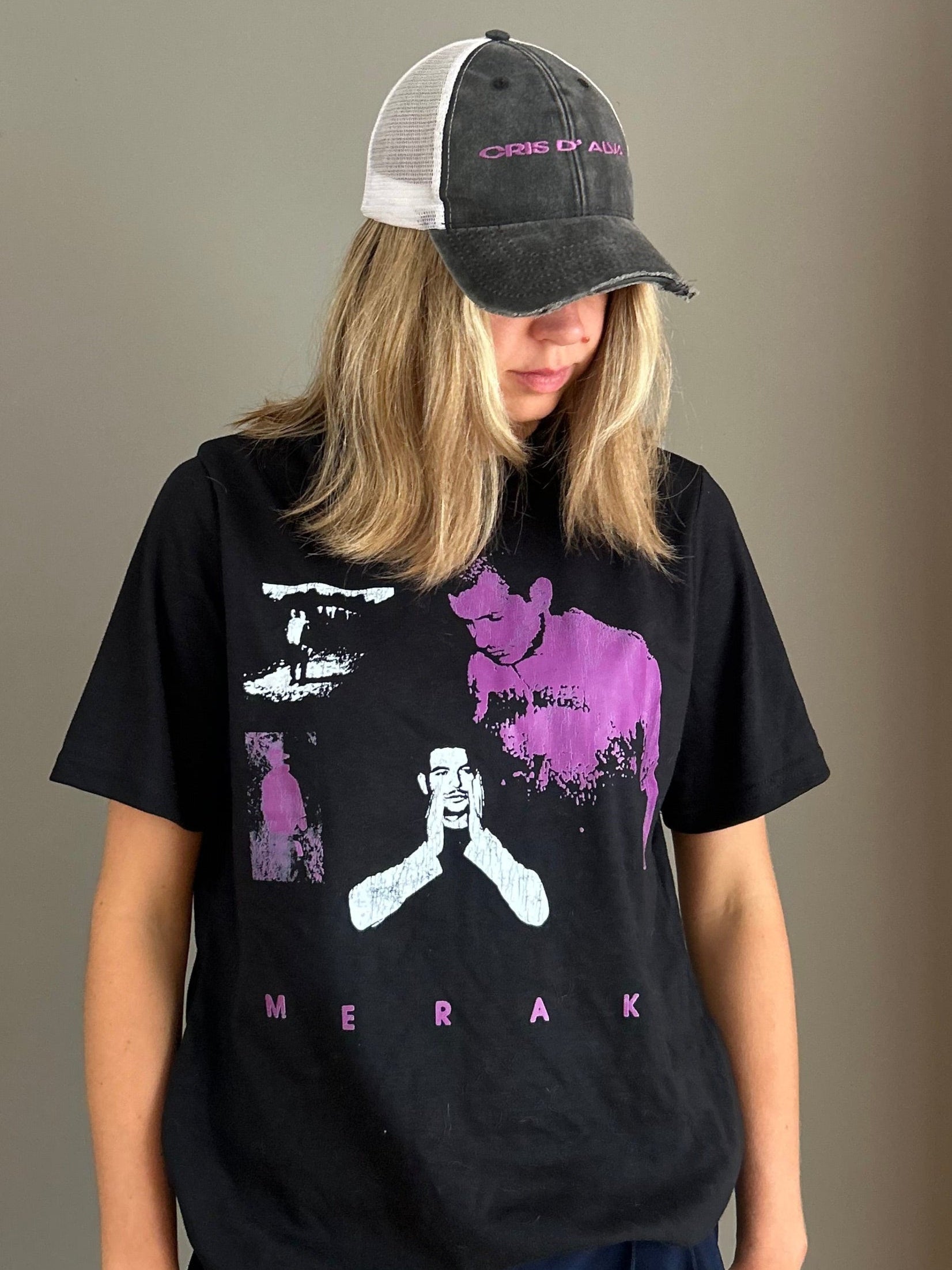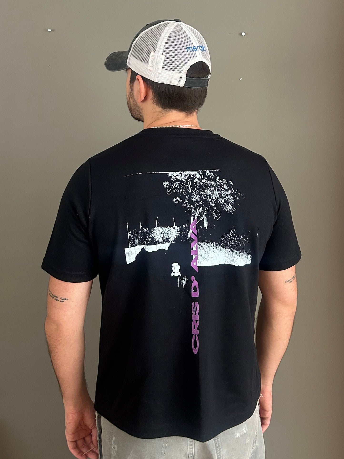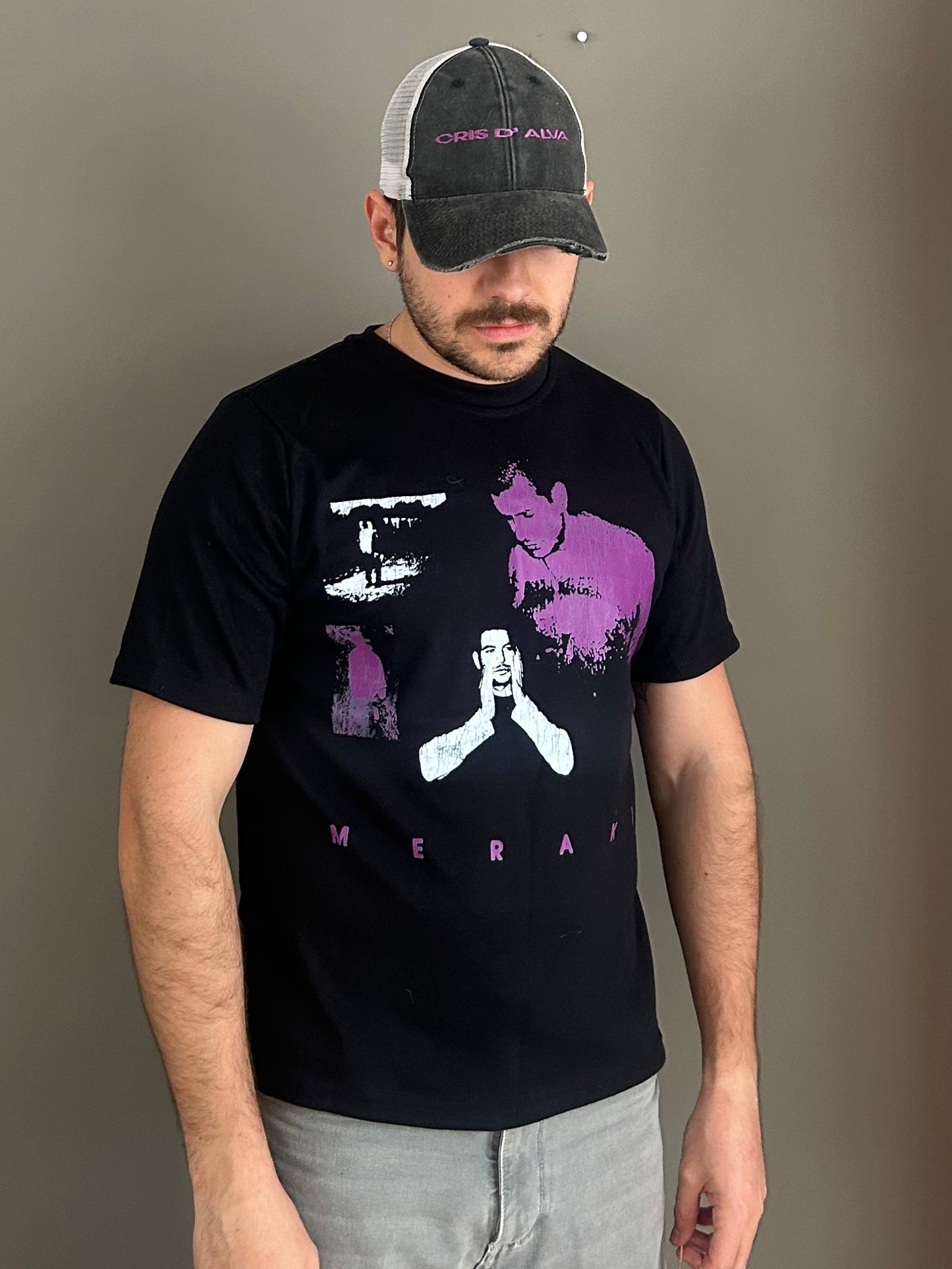 Camiseta negra de alta calidad, 95% algodón y 5% elasteno. Serigrafía al frente con el logo de Meraki y fotos del artista y el logo de Cris D'alva completo del álbum en la parte trasera. Cómoda, duradera y perfecta para llevar mostrar tu increíble gusto musical.